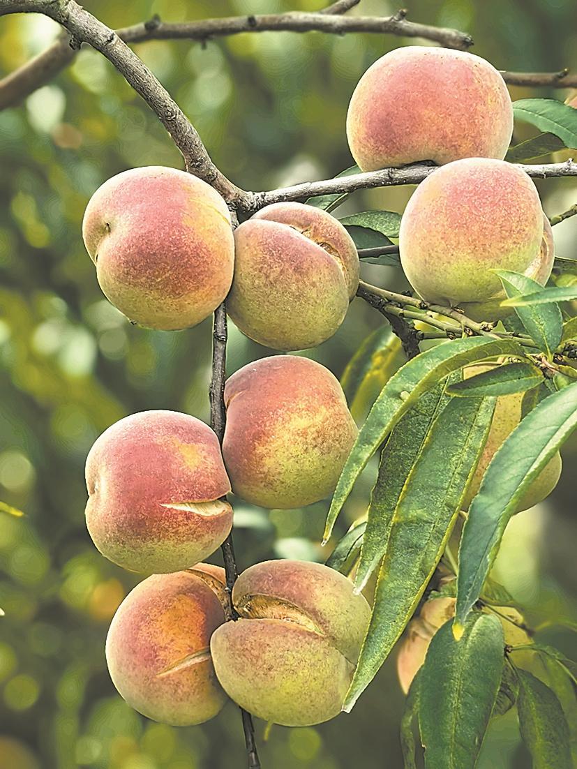 在胡根江的桃园里,像这样的裂冬桃有近3万公斤。今年本应是丰收年,但持续一个多月的降雨,导致果实突然裂开。